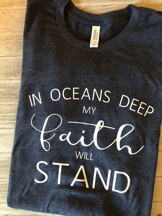 In Oceans Deep My Faith Will Stand - Bleached Inspirational Shirt