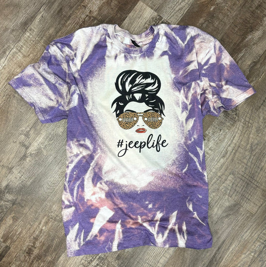 Jeep Life Messy Bun Leopard Glasses Bleached Tee