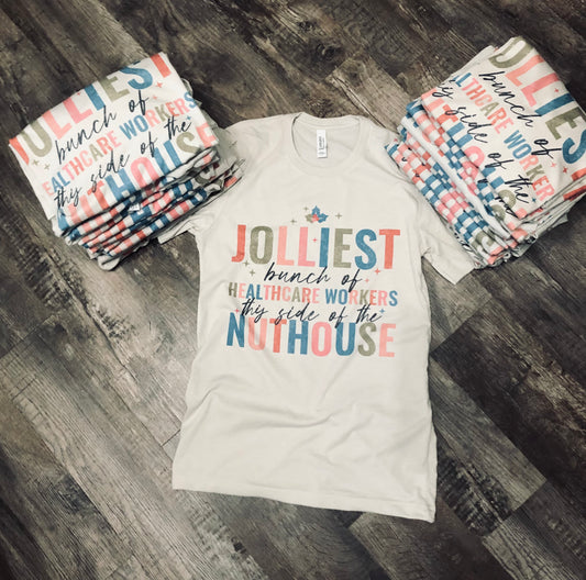 Jolliest bunch of Healthcare Workers this side of the Nuthouse Christmas Tee
