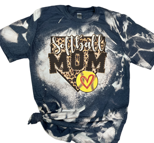 Softball Mom Shirt Bleached, Leopard Home Plate Softball Mom Shirt