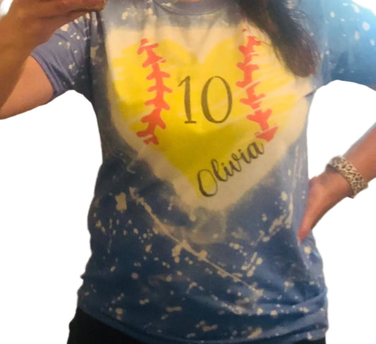Softball Heart Shirt Bleached ~ Custom Name and Number