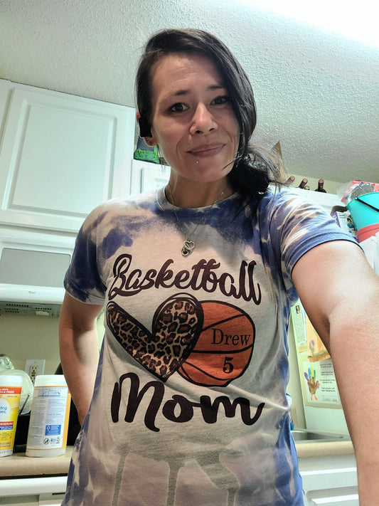 Basketball Mom Bleached Shirt (Custom Name and Number)