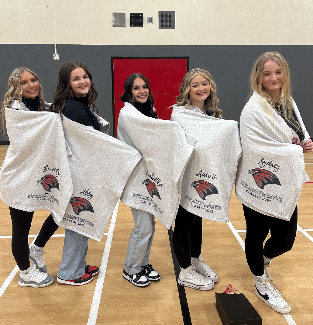Team Blankets Personalized for Senior Night Gifts. Custom Fleece Sweatshirt Blanket ~ Free Shipping over $50 ~ Perfect for dance teams, Cheer Squads, Graduation Gifts, Senior Sports Teams, you name it, and we will personalize it. These can also be made with company logos for employee gifts.